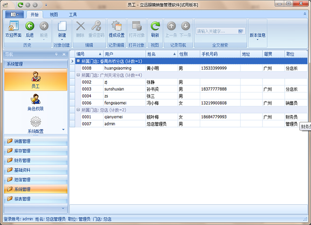 傲藍眼鏡銷售管理軟件使用的是用戶登錄系統(tǒng),要使用軟件必須先在軟件中注冊成為用戶,在傲藍眼鏡銷售管理軟件中,用戶即員工,因此注冊用戶實際上就是把一個員工的信息建立到軟件中。
